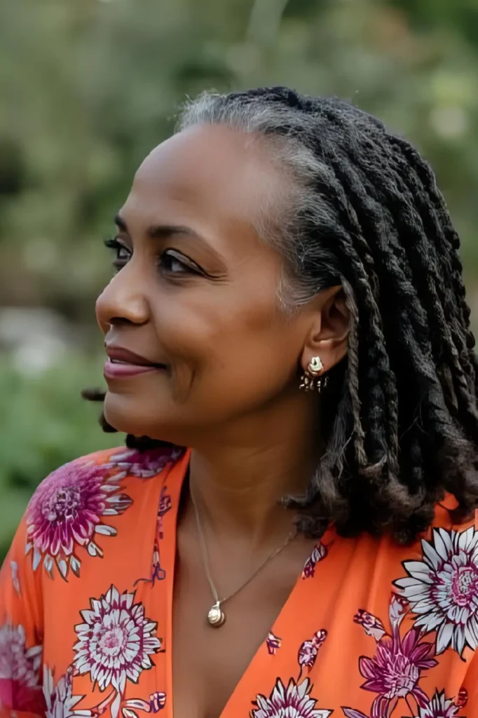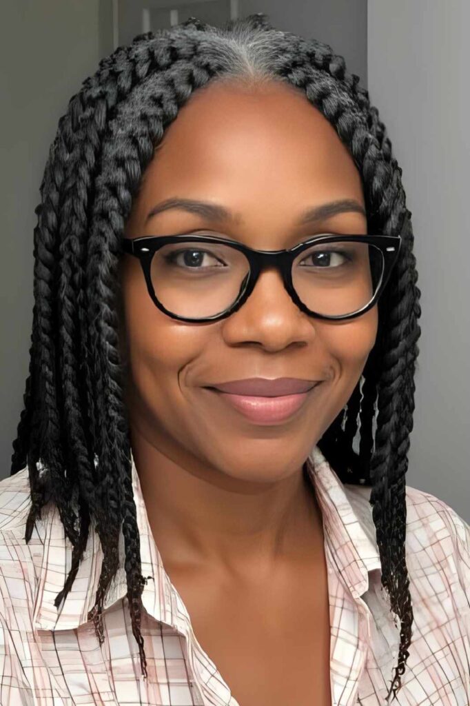 Senegalese or Marley twists at shoulder length are lightweight, stylish, and ideal for protecting aging hair without pulling too tightly.